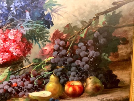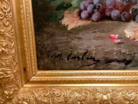 Exceptionnel tableau par Albert Louis CARLIER (1872-1938) dit Max CARLIER , représentant une nature morte aux roses et pivoines d une qualité de traitement réaliste extrêmement fine , sous forme d entablement .