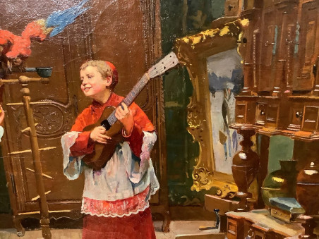 Nous pouvons constater toute sa maîtrise d'exécution et le rendu des matières , le dessin et détails propre à son art sans oublié la qualité des coloris chatoyants .